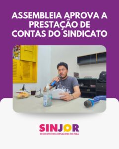 Edital de convocaçãoAssembleia Geral Ordinária O Sindicato de Jornalistas no Estado do Pará convoca seus sindicalizados para a Assembleia Geral Ordinária para apreciação e votação da prestação de contas da